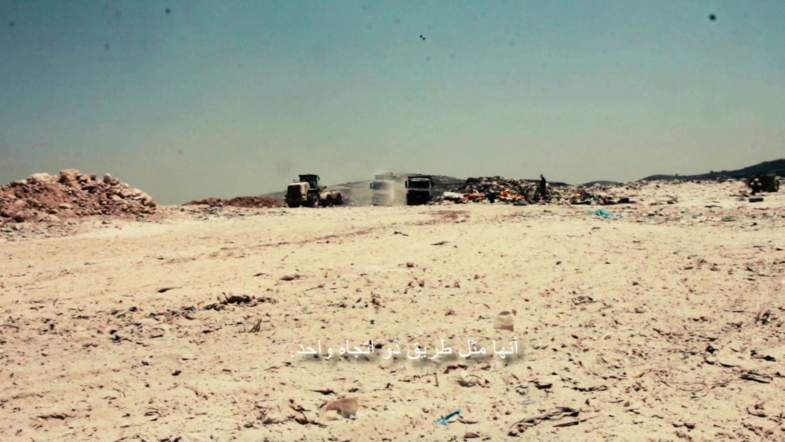 The film was first screened at the Khalil Sakakini Cultural center during the Sharjah Biennial 13, Tamawuj in Ramallah, in August 2017. It has also be screened as part of the Jerusalem Show iX at al-Ma’mal in the Old City of Jerusalem in 2018, and through London’s Urban Lab Films and Bertha DocHouse as part of an event called “Art and the Toxic Politics of Waste: Lebanon and Palestine” in 2020 (view the event’s Q&A with the filmmakers here). Our conversation was published as an essay in e-Flux (Issue # 127, May 2022). You can watch the film here.